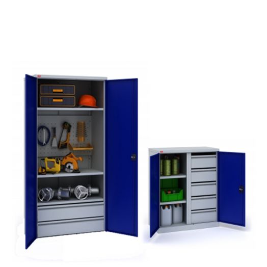 Необходимо хранить много материалов? Вместительные двухтумбовые верстаки прекрасно справятся с этой задачей. Нужны специальные крючки и держатели для ключей? Эти элементы имеются у нас в наличии, и их без труда можно установить со столом. Хотите обеспечить надежное хранение инструментам или другим ценным вещам? Наши ящики оснащены замками. С помощью ключа вы легко будете запирать их на время своего отсутствия.