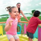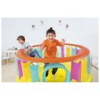 Надувной батут имеет яркий дизайн и понравится любому ребёнку. Он оборудован надувными стенками, что позволит безопасно наслаждаться отдыхом, а благодаря прозрачным элементам в стенках — родители смогут следить за своими детьми.