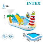 Яркий, красочный и многофункциональный детский центр для игр с водой «Весёлая рыбалка» оснащён всеми необходимыми элементами. В комплекте 2 рыбки, надувная удочка, 6 мячиков для надувной стенки. Ну и самое веселое — пальмовый распылитель.