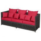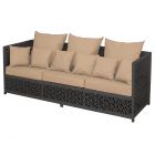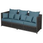 Алюминиевый каркас дивана окрашен порошковой краской для еще большей долговечности изделия. Диван выполнен из экоротанга, устойчивого к ультрафиолетовым лучам и атмосферным воздействиям. Цвет плетения - на ваш выбор. Диван дополнен мягкими элементами из высококачественной уличной ткани.