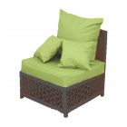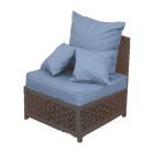 Алюминиевый каркас дивана окрашен порошковой краской для еще большей долговечности изделия. Диван выполнен из экоротанга, устойчивого к ультрафиолетовым лучам и атмосферным воздействиям. Цвет плетения - на ваш выбор. Диван дополнен мягкими элементами из высококачественной уличной ткани.