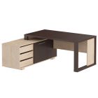 Из ЛДСП т.38мм, кромка ПВХ. Фронтальная панель короткая. Стол имеет несущую тумбу с ящиками, открытой нишей и слайд дверью. Габарит тумбы уменьшенный.