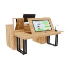 Стол дополнен зеркалом для контроля артикуляции и рабочим местом, куда можно положить канцелярские принадлежности и тетради. Сенсорный экран расположен под углом для удобства работы. Функционал зависит от наполнения оборудования и направлен на решение следующих задач: