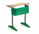 Основа парты - металлокаркас на круглой трубе - две боковые металлические опоры, окрашенный износостойким полимерным покрытием серого цвета с двумя крючками для портфеля, к которым крепится горизонтальная столешница эргономичной или прямоугольной формы формы. Ножки имеют пластиковые заглушки для регулировки неровных поверхностей пола,а так же предотвращения преждевременной порчи напольного покрытия.
