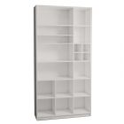 Шкаф с разно-переменным расположением открытых и закрытых полок разного размера и назначения.