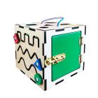 Бизикуб — крепкая красочная игрушка для разностороннего развития детей по методике Монтессори. На 5 сторонах куба находятся модули из жизни взрослых. Гладкая сторона — устойчивое основание.