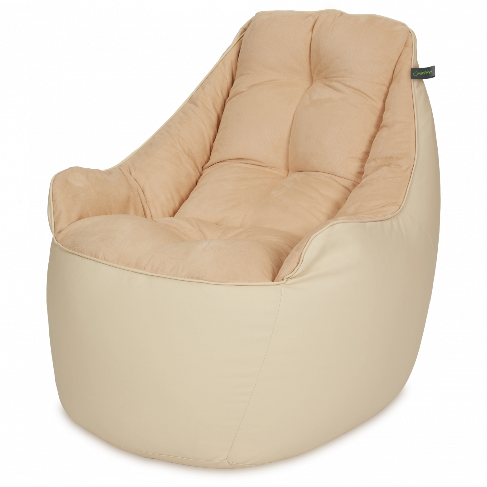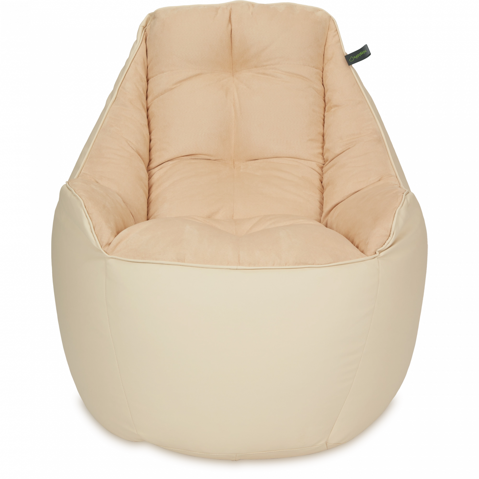 Размеры: 90x95x90 см.. Кресло сшито из мебельных тканей категории люкс: снизу искусственная ("дышащая") эко-кожа, сверху мягкая мебельная замша. Внутренний чехол: отсутствует. Цвет: Кожа Бежевый. Наполнитель: сертифицированный мебельный полистирол, с размером фракции 2-5 мм (премиум). Безопасен для детей и животных. Мягкое бескаркасное кресло (мешок, бин бэг) в форме классического кресла с подлокотниками.