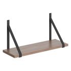 Полка с полкодержателями из ЛДСП т.22мм с кромками ПВХ т.2мм по периметру. Полкодержатели - декоративные, металлические, черного матового цвета. Полка с полкодержателями комплектуется крепежем для навешивания.