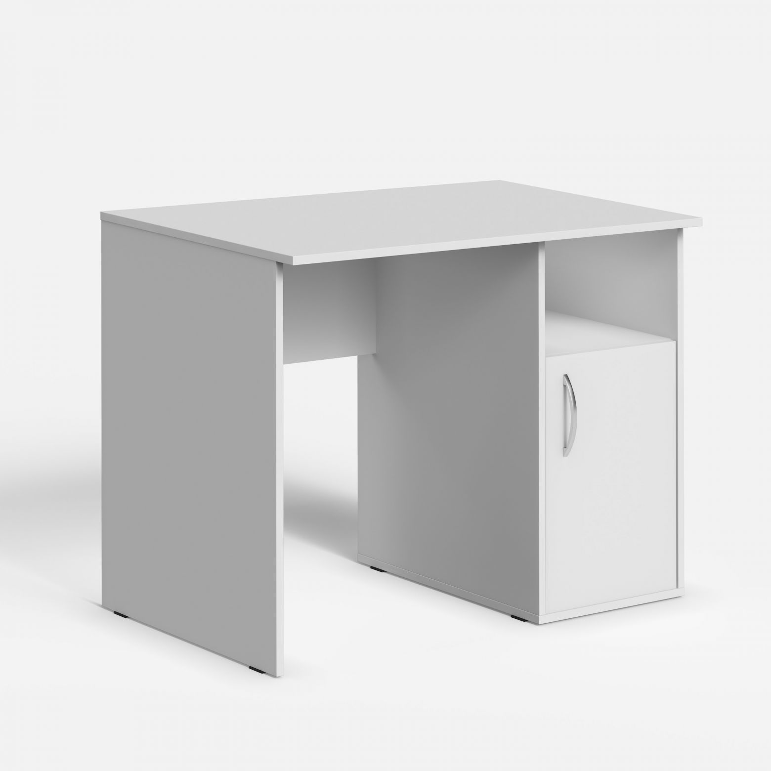 Из ЛДСП т.16мм. с кромкой ПВХ т.1мм. Комплектуется подпятниками. В закрытой секции полки нет. Ручка скоба - цвет серебро. Есть возможность установки полки под клавиатуру Y-401.
