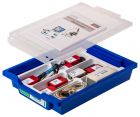 Цифровая лаборатория (за исключением микроскопа и цифровой видеокамеры) укомплектована в пластиковую систему хранения, которая закрывается прозрачной пластиковой крышкой на защелках для обеспечения наблюдения за содержимым. Комплект оборудования и датчики в системе хранения располагаются на ложементе.