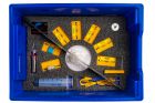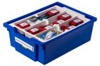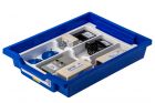 Все оборудование цифровой лаборатории укомплектовано в пластиковую систему хранения, которая закрывается прозрачной пластиковой крышкой на защелках для обеспечения наблюдения за содержимым. Комплект оборудования и датчики в системе хранения располагаются на ложементах в индивидуальных ячейках.