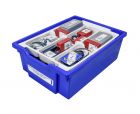 — Система храненияЦифровая лаборатория укомплектована в пластиковую систему хранения, которая закрывается прозрачной пластиковой крышкой на защелках для обеспечения наблюдения за содержимым. Комплект оборудования и датчики в системе хранения располагается на ложементах.