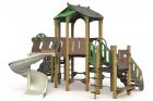 Материалы: канат , металл , ламинированная ФСФ фанера , ФСФ фанера , клееный брус , оцинкованный крепеж , горка-тоннель , заглушки , краска