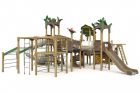 Материалы: канат , ламинированная ФСФ фанера , ФСФ фанера , клееный брус , оцинкованный крепеж , горка-тоннель , заглушки , краска