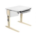 ДСУТ44-2 Растущий стол с лотком одноместный (ЛДСП белый, опора бежевый)