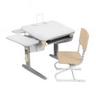Рабочее место школьника состоит из растущего стола и растущего стула, которые настраиваются под рост и комплектацию ребёнка или взрослого.