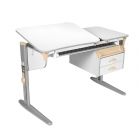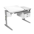 ДСУТ45-1-1 Растущий стол с лотком и тумбой одноместный (ЛДСП белый, опора серый)