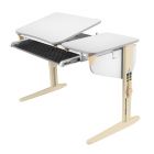 ДСУТ45-2-2 Растущий стол с лотком одноместный (ЛДСП белый, опора бежевый)