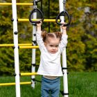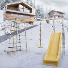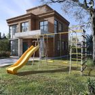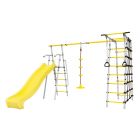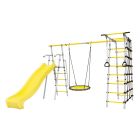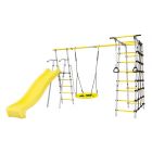 В комплект входят: горка, кольца, сетка лаза, гимнастическая лестница, рукоход и турник. Дополнить комплекс можно одинарными или парными качелями, а также подвесным диваном.