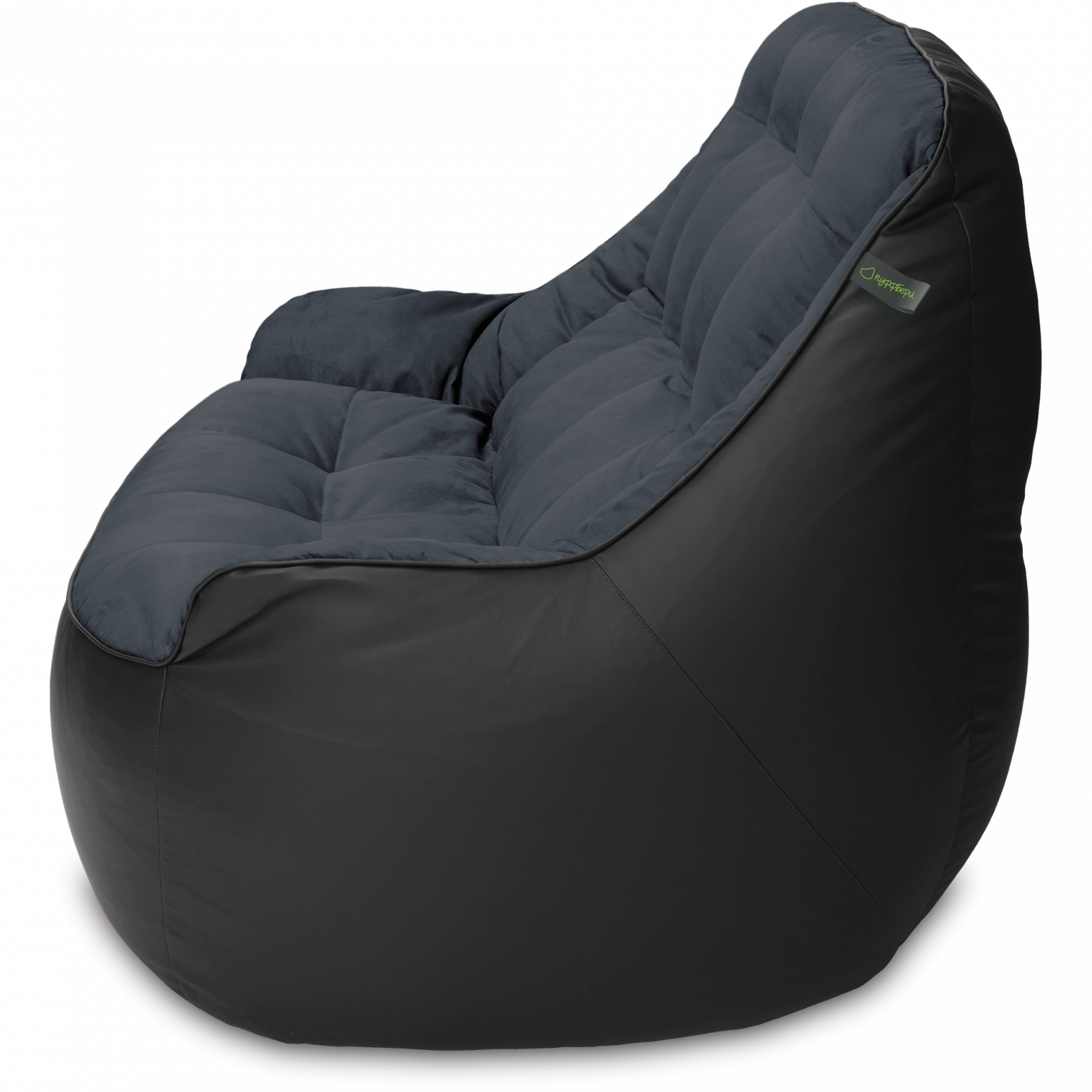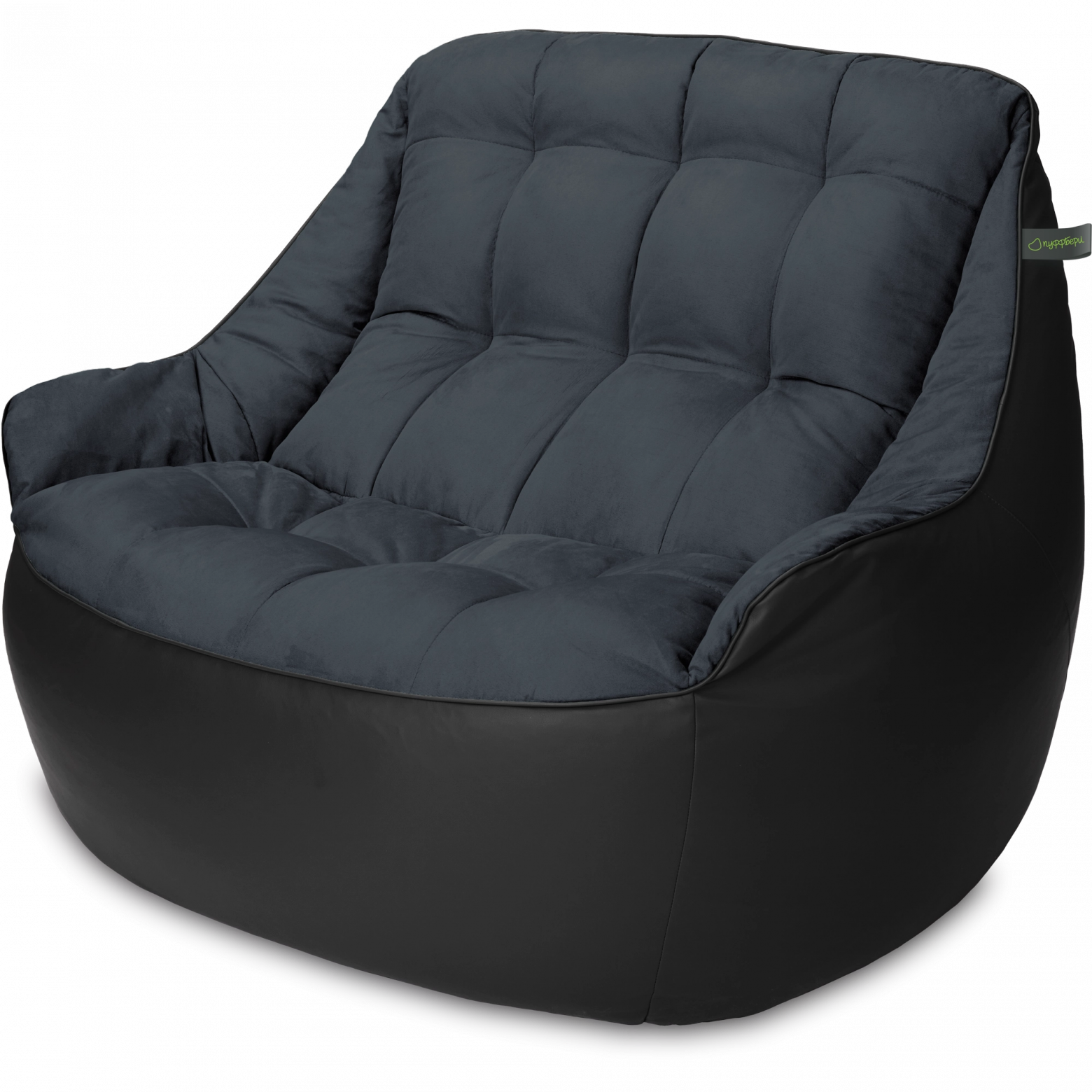 Размеры: 90x130x95 см.. Кресло сшито из мебельных тканей категории люкс: снизу искусственная ("дышащая") эко-кожа, сверху мягкая мебельная замша. Внутренний чехол: отсутствует. Цвет: Чёрный. Наполнитель: сертифицированный мебельный полистирол, с размером фракции 2-5 мм (премиум). Безопасен для детей и животных. Мягкое бескаркасное кресло (мешок, бин бэг) в форме классического дивана (софа) с подлокотниками.