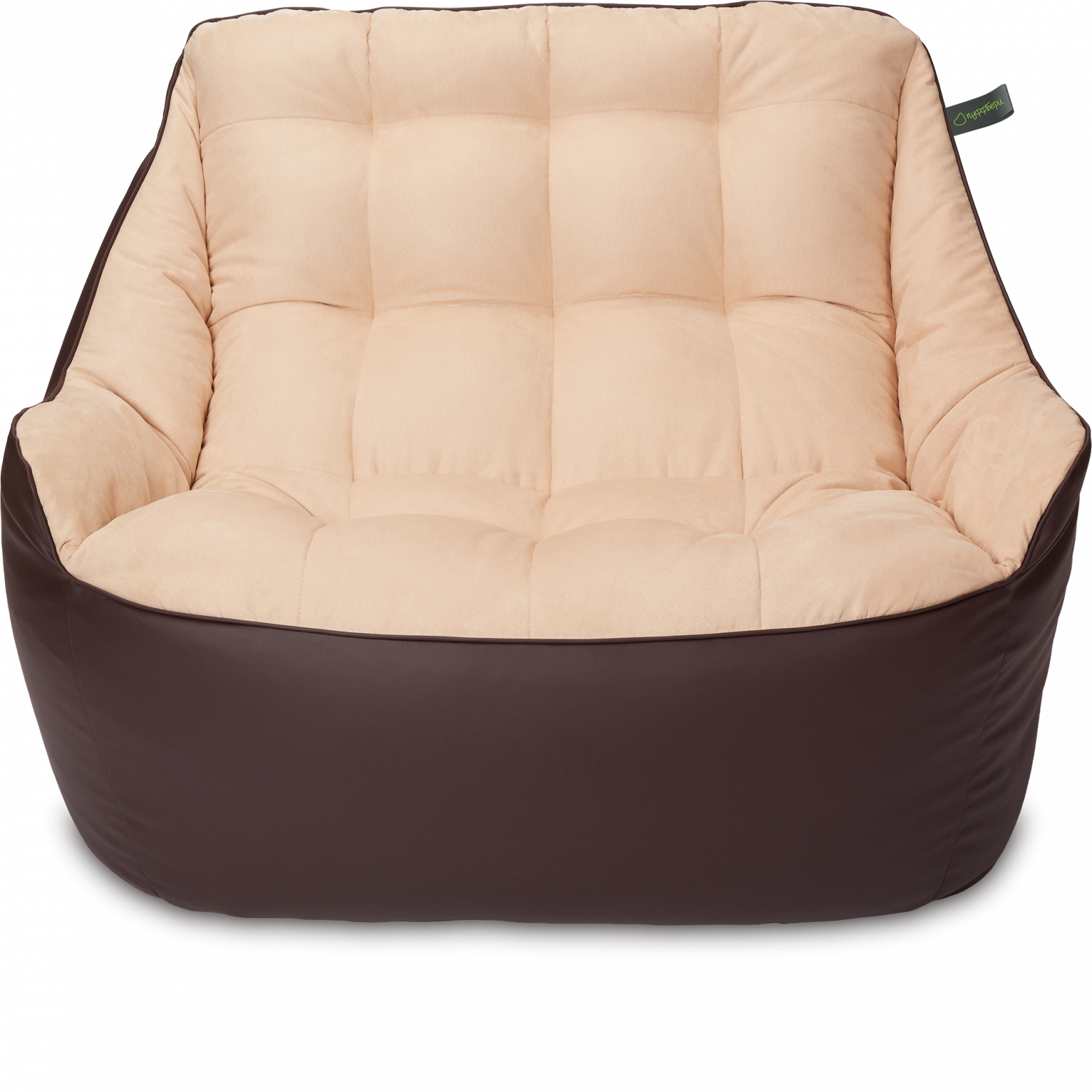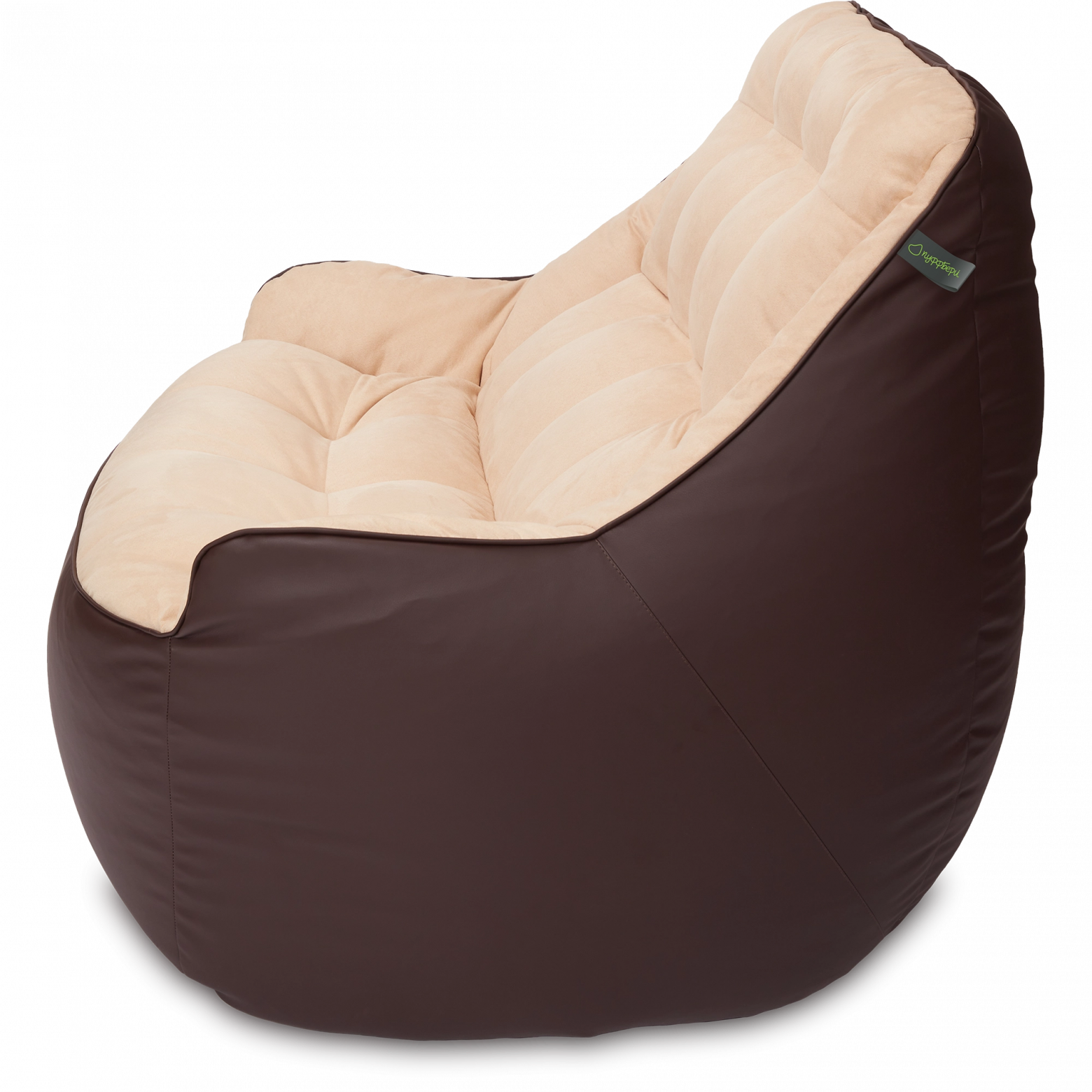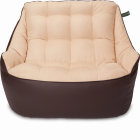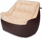 Размеры: 90x130x95 см.. Кресло сшито из мебельных тканей категории люкс: снизу искусственная ("дышащая") эко-кожа, сверху мягкая мебельная замша. Внутренний чехол: отсутствует. Цвет: Коричневый и бежевый. Наполнитель: сертифицированный мебельный полистирол, с размером фракции 2-5 мм (премиум). Безопасен для детей и животных. Мягкое бескаркасное кресло (мешок, бин бэг) в форме классического дивана (софа) с подлокотниками.