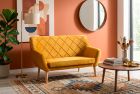 : ткань / Вес, кг: 26 / Высота (см): 90 / Гарантия, мес.: 12 / Глубина (см): 75 / Количество коробок: 1 / Материал каркаса: дерево / Материал сидения: велюр / Необходимость сборки: да / Размер упаковки 1: 1,3/0,76/0,68 / Страна производитель: Польша / Цвет: желтый / Ширина (см): 136