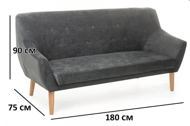 Вес, кг: 18 / Высота (см): 90 / Гарантия, мес.: 12 / Глубина (см): 55 / Количество коробок: 1 / Материал каркаса: дерево / Материал сидения: ткань / Необходимость сборки: да / Размер упаковки 1: 0,66/1,8/0,5 / Страна производитель: Польша / Цвет: серый / Ширина (см): 180