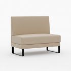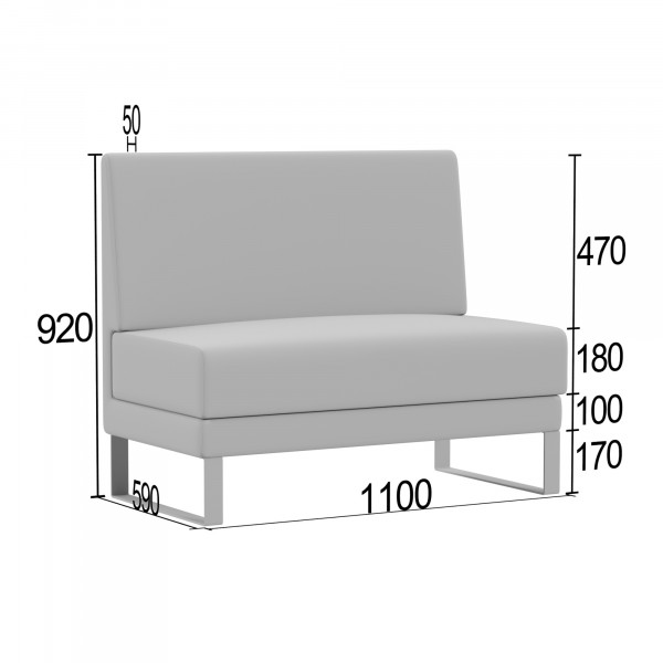 КаркасКаркас выполнен из калиброванного бруса 30х40 мм из массива хвойных пород древесины с влажностью 8-12%. Для усиления конструкции используются фанера толщиной 10 мм и 15 мм, ДСП 16 мм, влагостойкий ДВП 3,2 мм и прессованный картон 1,75 мм. Соединения осуществляются с помощью каркасных пневмопистолетов и каркасной скобы 50 мм с клеем, что обеспечивает высокую прочность и надежность.ЧехолЧехол изготавливается по точным лекалам из высокопрочных материалов. Пошив выполняется на колонковых одно- и двухигольных швейных машинках с тройным продвижением, что гарантирует ровность швов. Компенсирующая лапка со встроенным направителем середины шва обеспечивает стабильную натяжку ниток и равномерное расстояние между строчками.СиденьеСиденье оснащено наполнителем из пенополиуретана толщиной 10 мм, 20 мм, 30 мм и 80 мм (подушка). Используется пенополиуретан ST2536 плотностью 25 кг/м? и жесткостью 3,6 кПа. Обивка дна выполнена из технической ткани спанбонд плотностью 100 г/м?.СпинкаСпинка имеет наполнитель из пенополиуретана толщиной 10 мм и 30 мм, также плотностью 25 кг/м? и жесткостью 3,6 кПа.ОпорыОпоры черного цвета выполнены из металлической полосы. Высота опор составляет 170 мм. Регулировка высоты отсутствует. Тип крепления — накладная площадка, монтаж не требуется.УпаковкаУпаковка включает спанбонд 17, пленекс, двухслойный картон и полиэтиленовую пленку. Используется одноразовый фирменный скотч для предотвращения несанкционированной переупаковки.Допустимая нагрузкаМаксимальная нагрузка на одно посадочное место составляет до 120 кг.