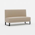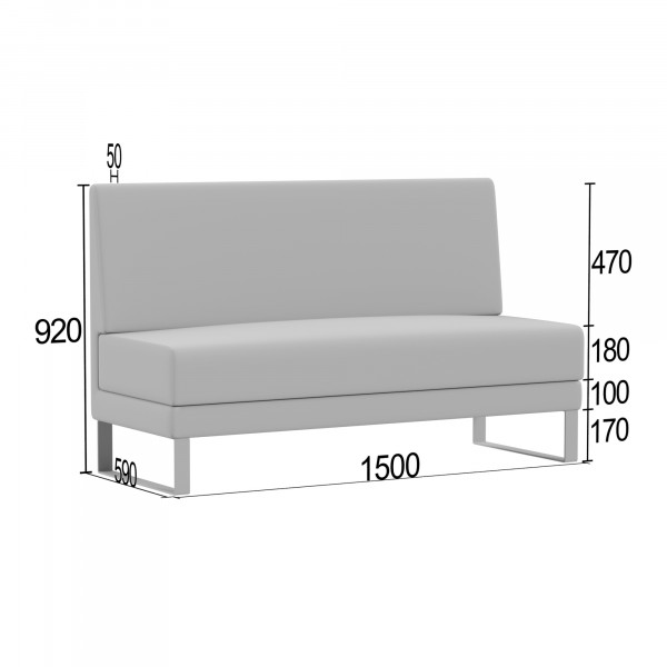 КаркасКаркас выполнен из калиброванного бруса 30х40 мм из массива хвойных пород древесины с влажностью 8-12%. Для усиления конструкции используются фанера толщиной 10 мм и 15 мм, ДСП 16 мм, влагостойкий ДВП 3,2 мм и прессованный картон 1,75 мм. Соединения осуществляются с помощью каркасных пневмопистолетов и каркасной скобы 50 мм с клеем, что обеспечивает высокую прочность и надежность.ЧехолЧехол изготавливается по точным лекалам из высокопрочных материалов. Пошив выполняется на колонковых одно- и двухигольных швейных машинках с тройным продвижением, что гарантирует ровность швов. Компенсирующая лапка со встроенным направителем середины шва обеспечивает стабильную натяжку ниток и равномерное расстояние между строчками.СиденьеСиденье оснащено наполнителем из пенополиуретана толщиной 10 мм, 20 мм, 30 мм и 80 мм (подушка). Используется пенополиуретан ST2536 плотностью 25 кг/м? и жесткостью 3,6 кПа. Обивка дна выполнена из технической ткани спанбонд плотностью 100 г/м?.СпинкаСпинка имеет наполнитель из пенополиуретана толщиной 10 мм и 30 мм, также плотностью 25 кг/м? и жесткостью 3,6 кПа.ОпорыОпоры черного цвета выполнены из металлической полосы. Высота опор составляет 170 мм. Регулировка высоты отсутствует. Тип крепления — накладная площадка, монтаж не требуется.УпаковкаУпаковка включает спанбонд 17, пленекс, двухслойный картон и полиэтиленовую пленку. Используется одноразовый фирменный скотч для предотвращения несанкционированной переупаковки.Допустимая нагрузкаМаксимальная нагрузка на одно посадочное место составляет до 120 кг.