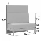 КаркасКаркас выполнен из калиброванного бруса 30х40 мм из массива хвойных пород древесины с влажностью 8-12%. Для усиления конструкции используются фанера толщиной 10 мм и 15 мм, ДСП 16 мм, влагостойкий ДВП 3,2 мм и прессованный картон 1,75 мм. Соединения осуществляются с помощью каркасных пневмопистолетов и каркасной скобы 50 мм с клеем, что обеспечивает высокую прочность и надежность.ЧехолЧехол изготавливается по точным лекалам из высокопрочных материалов. Пошив выполняется на колонковых одно- и двухигольных швейных машинках с тройным продвижением, что гарантирует ровность швов. Компенсирующая лапка со встроенным направителем середины шва обеспечивает стабильную натяжку ниток и равномерное расстояние между строчками.СиденьеСиденье оснащено наполнителем из пенополиуретана толщиной 10 мм, 20 мм, 30 мм и 80 мм (подушка). Используется пенополиуретан ST2536 плотностью 25 кг/м? и жесткостью 3,6 кПа. Обивка дна выполнена из технической ткани спанбонд плотностью 100 г/м?.СпинкаСпинка имеет наполнитель из пенополиуретана толщиной 10 мм и 30 мм, также плотностью 25 кг/м? и жесткостью 3,6 кПа.ОпорыОпоры черного цвета выполнены из металлической полосы. Высота опор составляет 170 мм. Регулировка высоты отсутствует. Тип крепления — накладная площадка, монтаж не требуется.УпаковкаУпаковка включает спанбонд 17, пленекс, двухслойный картон и полиэтиленовую пленку. Используется одноразовый фирменный скотч для предотвращения несанкционированной переупаковки.Допустимая нагрузкаМаксимальная нагрузка на одно посадочное место составляет до 120 кг.