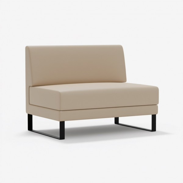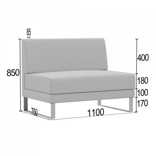 КаркасКаркас выполнен из калиброванного бруса 30х40 мм из массива хвойных пород древесины с влажностью 8-12%. Для усиления конструкции используются фанера толщиной 10 мм и 15 мм, ДСП 16 мм, влагостойкий ДВП 3,2 мм и прессованный картон 1,75 мм. Соединения осуществляются с помощью каркасных пневмопистолетов и каркасной скобы 50 мм с клеем, что обеспечивает высокую прочность и надежность.ЧехолЧехол изготавливается по точным лекалам из высокопрочных материалов. Пошив выполняется на колонковых одно- и двухигольных швейных машинках с тройным продвижением, что гарантирует ровность швов. Компенсирующая лапка со встроенным направителем середины шва обеспечивает стабильную натяжку ниток и равномерное расстояние между строчками.СиденьеСиденье оснащено пружинными блоками и наполнителем из пенополиуретана толщиной 10 мм, 20 мм, 30 мм и 80 мм (подушка). Используется пенополиуретан ST2536 плотностью 25 кг/м? и жесткостью 3,6 кПа. Обивка дна выполнена из технической ткани спанбонд плотностью 100 г/м?.СпинкаСпинка имеет наполнитель из пенополиуретана толщиной 10 мм и 30 мм, также плотностью 25 кг/м? и жесткостью 3,6 кПа.ОпорыОпоры черного цвета выполнены из металлической полосы. Высота опор составляет 170 мм. Регулировка высоты отсутствует. Тип крепления — накладная площадка, монтаж не требуется.УпаковкаУпаковка включает спанбонд 17, пленекс, двухслойный картон и полиэтиленовую пленку. Используется одноразовый фирменный скотч для предотвращения несанкционированной переупаковки.Допустимая нагрузкаМаксимальная нагрузка на одно посадочное место составляет до 120 кг.