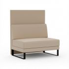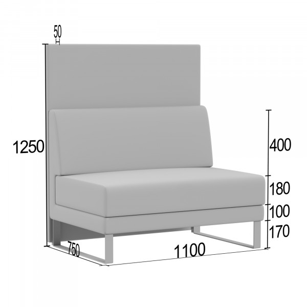 КаркасКаркас выполнен из калиброванного бруса 30х40 мм из массива хвойных пород древесины с влажностью 8-12%. Для усиления конструкции используются фанера толщиной 10 мм и 15 мм, ДСП 16 мм, влагостойкий ДВП 3,2 мм и прессованный картон 1,75 мм. Соединения осуществляются с помощью каркасных пневмопистолетов и каркасной скобы 50 мм с клеем, что обеспечивает высокую прочность и надежность.ЧехолЧехол изготавливается по точным лекалам из высокопрочных материалов. Пошив выполняется на колонковых одно- и двухигольных швейных машинках с тройным продвижением, что гарантирует ровность швов. Компенсирующая лапка со встроенным направителем середины шва обеспечивает стабильную натяжку ниток и равномерное расстояние между строчками.СиденьеСиденье оснащено пружинными блоками и наполнителем из пенополиуретана толщиной 10 мм, 20 мм, 30 мм и 80 мм (подушка). Используется пенополиуретан ST2536 плотностью 25 кг/м? и жесткостью 3,6 кПа. Обивка дна выполнена из технической ткани спанбонд плотностью 100 г/м?.СпинкаСпинка имеет наполнитель из пенополиуретана толщиной 10 мм и 30 мм, также плотностью 25 кг/м? и жесткостью 3,6 кПа. Столешница ЛДСПОпорыОпоры черного цвета выполнены из металлической полосы. Высота опор составляет 170 мм. Регулировка высоты отсутствует. Тип крепления — накладная площадка, монтаж не требуется.УпаковкаУпаковка включает спанбонд 17, пленекс, двухслойный картон и полиэтиленовую пленку. Используется одноразовый фирменный скотч для предотвращения несанкционированной переупаковки.Допустимая нагрузкаМаксимальная нагрузка на одно посадочное место составляет до 120 кг.