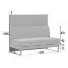 КаркасКаркас выполнен из калиброванного бруса 30х40 мм из массива хвойных пород древесины с влажностью 8-12%. Для усиления конструкции используются фанера толщиной 10 мм и 15 мм, ДСП 16 мм, влагостойкий ДВП 3,2 мм и прессованный картон 1,75 мм. Соединения осуществляются с помощью каркасных пневмопистолетов и каркасной скобы 50 мм с клеем, что обеспечивает высокую прочность и надежность.ЧехолЧехол изготавливается по точным лекалам из высокопрочных материалов. Пошив выполняется на колонковых одно- и двухигольных швейных машинках с тройным продвижением, что гарантирует ровность швов. Компенсирующая лапка со встроенным направителем середины шва обеспечивает стабильную натяжку ниток и равномерное расстояние между строчками.СиденьеСиденье оснащено пружинными блоками и наполнителем из пенополиуретана толщиной 10 мм, 20 мм, 30 мм и 80 мм (подушка). Используется пенополиуретан ST2536 плотностью 25 кг/м? и жесткостью 3,6 кПа. Обивка дна выполнена из технической ткани спанбонд плотностью 100 г/м?.СпинкаСпинка имеет наполнитель из пенополиуретана толщиной 10 мм и 30 мм, также плотностью 25 кг/м? и жесткостью 3,6 кПа.ОпорыОпоры черного цвета выполнены из металлической полосы. Высота опор составляет 170 мм. Регулировка высоты отсутствует. Тип крепления — накладная площадка, монтаж не требуется.УпаковкаУпаковка включает спанбонд 17, пленекс, двухслойный картон и полиэтиленовую пленку. Используется одноразовый фирменный скотч для предотвращения несанкционированной переупаковки.Допустимая нагрузкаМаксимальная нагрузка на одно посадочное место составляет до 120 кг.
