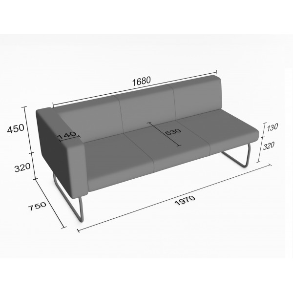Каркас: калиброванный брус 30х40 мм массив хвойных пород древесины 8-12% влажности, ДСП 16 мм, ДВП 3,2 мм влагостойкий, картон прессованный 1,75 мм скрепляются при помощи каркасных пневмописталетов (созданных для интенсивных производств с качественно подготовленным воздухом), а так же каркасной скобой 50 мм с клеем (с высокими крепёжными свойствами). Это позволяет надежно скрепить дерево, фанеру, ДВП, ДСП, ЛДСП и обеспечивает практически неразборность соединений и отсутствие рекламаций.Чехол: изготавливается по проработанным, выверенным по дизайну лекалам. Во избежание отклонений или брака чехлов лекала создаются из специальных высокопрочных материалов. Пошив чехлов осуществляется колонковыми одно- и двух игольными швейными машинками с тройным продвижением с равномерной амплитудой подачи материалов. Так обеспечивается получение идеально ровной по всей длине шва строчки. Дополнительно, благодаря компенсирующей лапке со встроенным направителем середины шва, достигается стабильная натяжка ниток и равномерное расстояние между строчками.Сиденье: наполнитель — пенополиуритан 20 мм, 30 мм, 50 мм ST2536 плотностью 25 кг/м?, жесткость 3,6 кПа, техническая ткань — спанбонд 100 г/м? (обивка дна).Спинка: наполнитель — пенополиуритан 10 мм и 30 мм ST2536 плотностью 25 кг/м?, жесткость 3,6 кПа.Подлокотники: наполнитель — пенополиуритан10 мм, 20 мм ST2536 плотностью 25 кг/м?, жесткость 3,6 кПа.Опоры: цвет — черный или серый, материал — металлическая труба диаметром 20 мм, высота — 310 мм, возможность регулировки — отсутствует, тип крепления — накладная площадка, монтаж — не требуется.Упаковка: многослойная защита: спанбонд 17, пленекс, двухслойный картон, полиэтиленовая пленка, фирменный одноразовый скотч, исключающий несанкционированную переупаковку.Допустимая нагрузка: до 120 кг на одно посадочное место.
