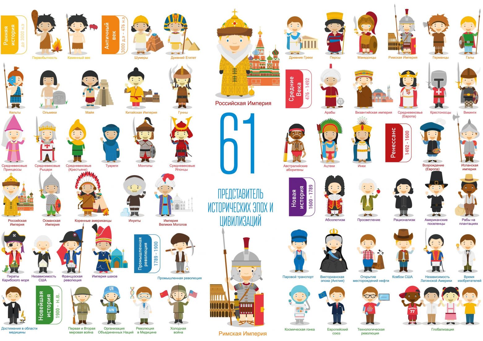 Дополнительный набор к карте мира "Мирознайка" Исторические периоды и цивилизации (61 шт.) + плакат
