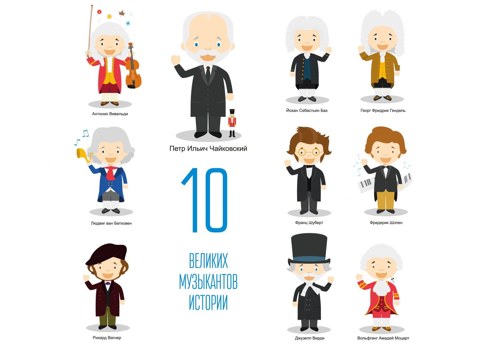 Дополнительный набор к карте мира "Мирознайка" Великие музыканты (10 шт.) + плакат