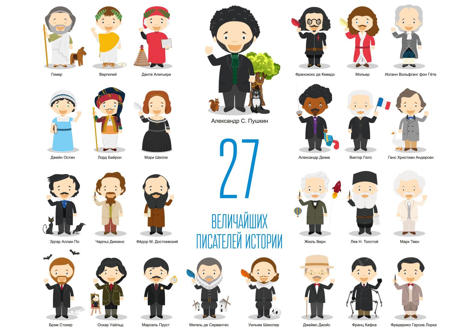 Дополнительный набор к карте мира "Мирознайка" Великие писатели (27 шт.) + плакат