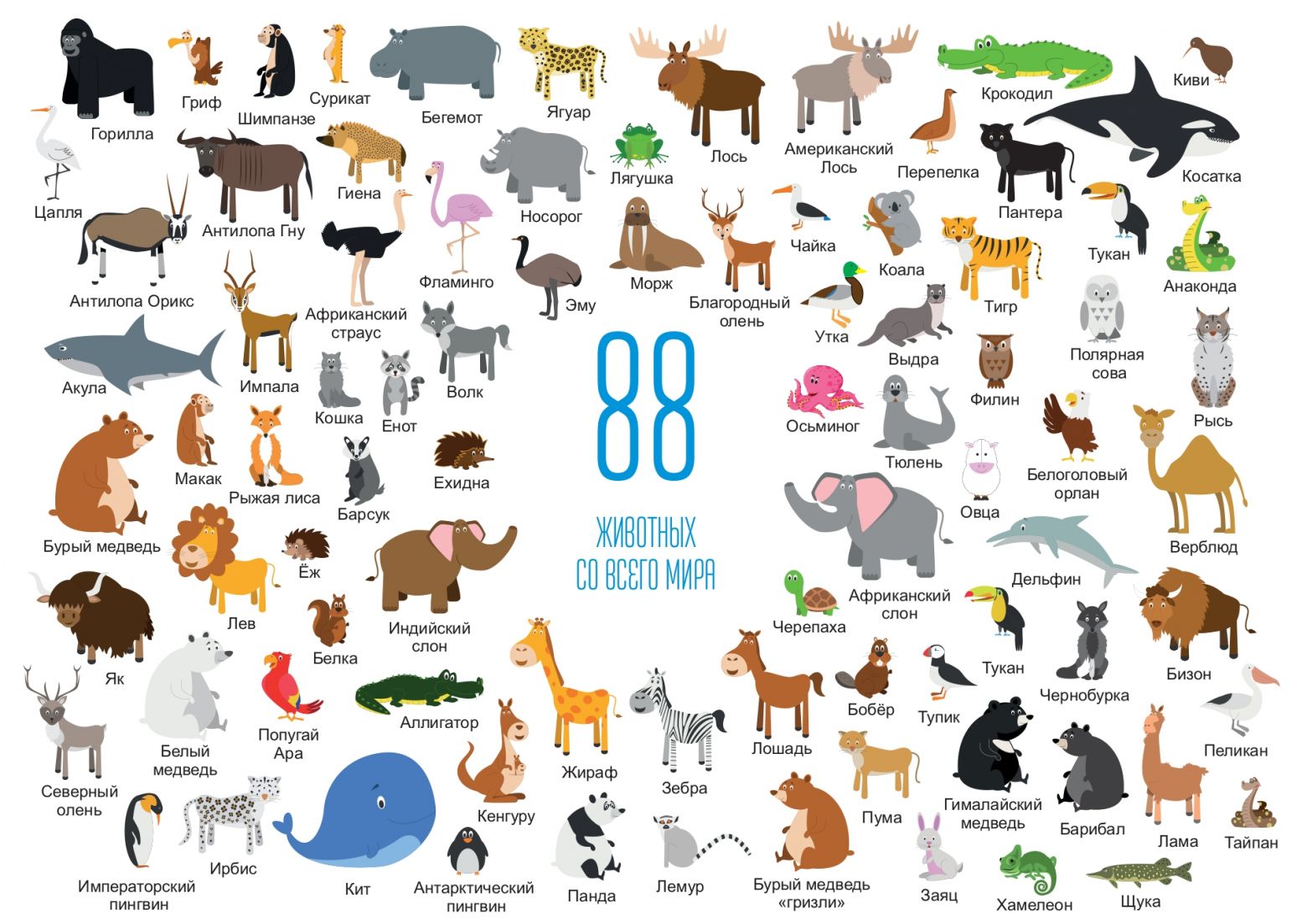 Дополнительный набор к карте мира "Мирознайка" Животные мира (88 шт.) + плакат