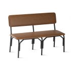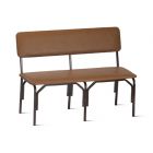 Металлокаркас изготовлен из стального квадратного профиля 20х20х1,2 мм и состоит из основания и трёх секций ножек, крепящихся с помощью гильз межсекционной стяжки и винтов М6. Металлокаркас окрашен защитным полимерно-порошковым покрытием. Сиденье и спинка изготовлены из ДСП толщиной 16 мм и обтянуты поролоном толщиной 20 мм и мебельным кожзаменителем. Нижняя часть сиденья и задняя сторона спинки обита нетканым материалом (спанбондом). Мягкие части скамьи крепятся к металлокаркасу с помощью саморезов 4х30 мм. Допустимая нагрузка на одно посадочное место 100 кг.