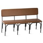 Металлокаркас изготовлен из стального квадратного профиля 20х20х1,2 мм и состоит из основания и трёх секций ножек, крепящихся с помощью гильз межсекционной стяжки и винтов М6. Металлокаркас окрашен защитным полимерно-порошковым покрытием. Сиденье и спинка изготовлены из ДСП толщиной 16 мм и обтянуты поролоном толщиной 20 мм и мебельным кожзаменителем. Нижняя часть сиденья и задняя сторона спинки обита нетканым материалом (спанбондом). Мягкие части скамьи крепятся к металлокаркасу с помощью саморезов 4х30 мм. Допустимая нагрузка на одно посадочное место 100 кг.