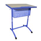 ФОРМУЛА Стол с бесшовной кромкой, регулируемый 1-местный (Синий металлокаркас)