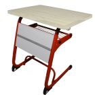 ПРОМЕТЕЙ Стол регулируемый 1-местный, с углом наклона и пеналом (Красный металлокаркас)