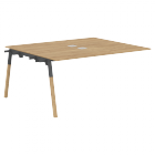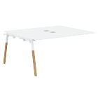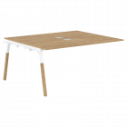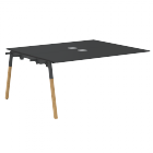 Столешницы ЛДСП т.18мм. c кромкой ABS т.2.мм, каждая комплектуется квадратной заглушкой кабель-канала по центру и каждая 2-мя траверсами. Между столешницами зазор 6мм для установки настольных Экранов. Столешницы комплектуюца Промежуточной опорой комбинированной А-образной формы, верхняя часть из профиля трубы 40х40мм и нижняя часть из массива бука; отделка – масло-воск. Промежуточная опора с регулировкой внизу.