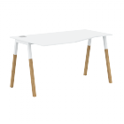 Столешница эргономичная из ЛДСП т.18мм. c кромкой ABS т.2.мм, комплектуется квадратной заглушкой кабель-канала слева или справа, 2-мя траверсами и комбинированными опорами А-образной формы, верхняя часть из профиля трубы 40х40мм и нижняя часть из массива бука; отделка – масло-воск. Опоры имеют регулировку внизу.