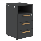 Тумба приставная с открытой нишей и ящиками из ЛДСП т.18мм, с кромками ABS т.2 и 0,45мм, комплектуется центральным замком, регулируемыми опорами шкафной группы 50х27 черного цвета. Ящики-фолдинг и дно белого цвета. Ручки накладные, расположение горизонтальное, материал - массив бука, отделка – масло-воск. Каркас тумбы в цвете Белый премиум и Черный графит, топ в цвете Белый премиум, Черный графит и Дуб Гамильтон.