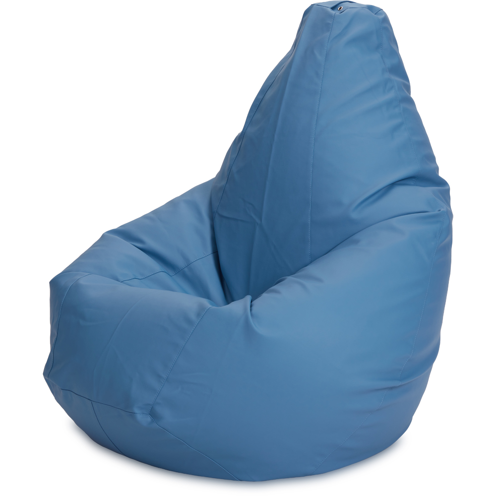 Размеры: XL, 85x70x60 см. Предназначен для детей. Внешний чехол: Высокопрочная стойкая к истиранию мебельная эко-кожа. Внутренний чехол: Спанбонд 60D. Цвет: Кожа Синий. Наполнитель: гипоаллергенный сертифицированный мебельный полистирол, с размером фракции 2-5 мм (премиум). Удобная ручка для переноски. Съемный внешний чехол, пригодный для автоматической стирки. Двойные швы, армированные нити, люверсы для отвода воздуха. Безопасен для детей и животных. Мягкий бескаркасный мешок (бин бэг) в форме груши для эксплуатации в качестве кресла