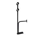 Хореографический кронштейн напольно-пристенный двухрядный представляет собой цельносварную конструкцию, состоящую из стойки кронштейна, пристенного кронштейна, держателей поручней и опорной пластины изготовленных из стали. Сварные швы хореографических стоек тщательно обработаны и зачищены. Поверхность изделия окрашена порошковым напылением в электростатическом поле. В комплекте с кронштейном идут саморезы для крепления жерди.
