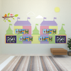 Яркий красочный стенд в виде замка легко разместится в фойе или коридоре детского сада и отлично впишется в любой интерьер. На перфорированной поверхности панелей удобно прикрепить рисунки детей.