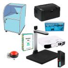 компакт компьютер от Pentium Gold/4Gb/SSD 128Gb/Win 10, камера-сканер, беспроводная клавиатура и мышь, кнопка, камера-сканер с регулируемым креплением, эмиттер, короткофокусный проектор, кронштейн для проектора, тумба на колесах 500х500х800h, настенное полотно, принтер лазерный