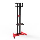 Материал сталь. Основание установлено на колеса со стопором. Кронштейн для крепления экрана может быть установлен в 3х положениях по высоте. Регулируемая по высоте полка для ноутбука, устанавливается в любое комфортное положение. Профиль опорных ног квадратного сечения. Предусмотрено окрашивание стойки в любые цвета по RAL.
